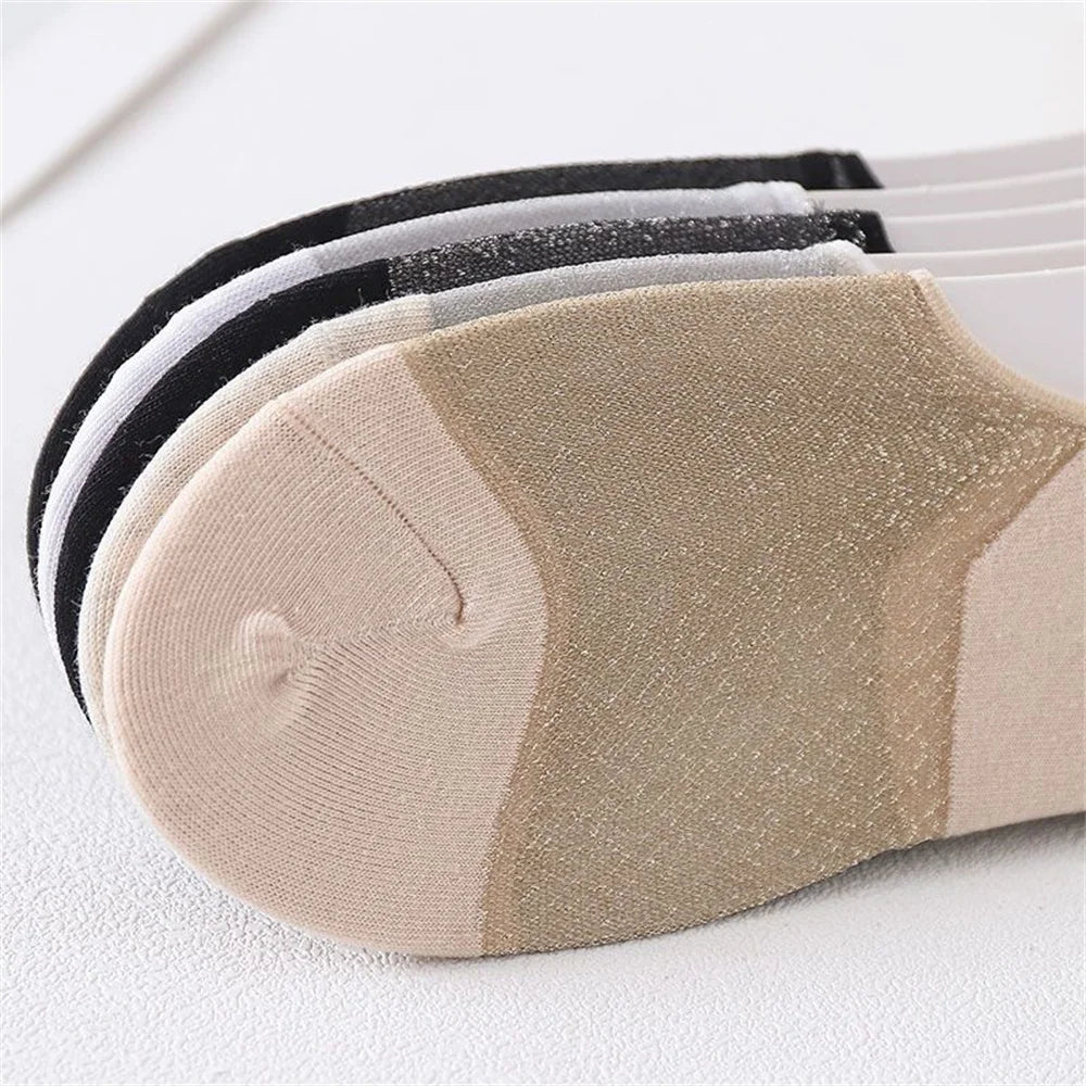 5 Pairs Shiny Ultra Thin Transparent Crystal Silk Socks Spring Summer COTTON Sole Anti Slip Invisible Boat Socks Low Cut