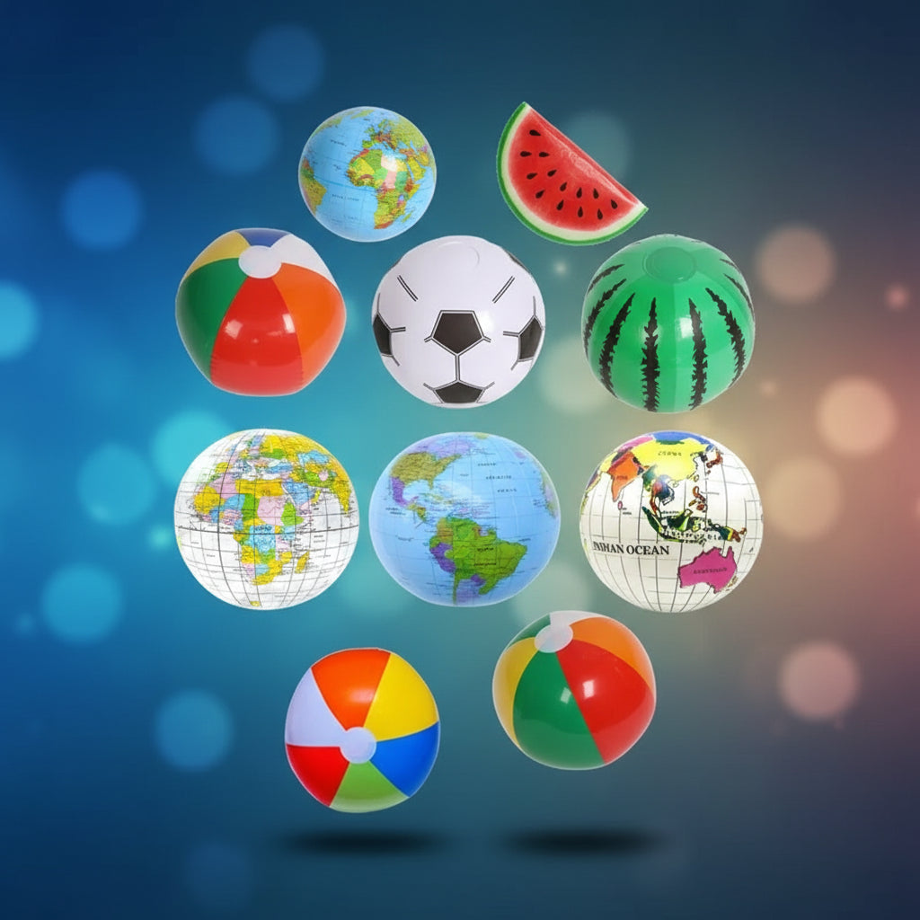 | Voorbeelden Inhoud | Klassieke strandballen, creatieve opblaasbare rekwisieten |