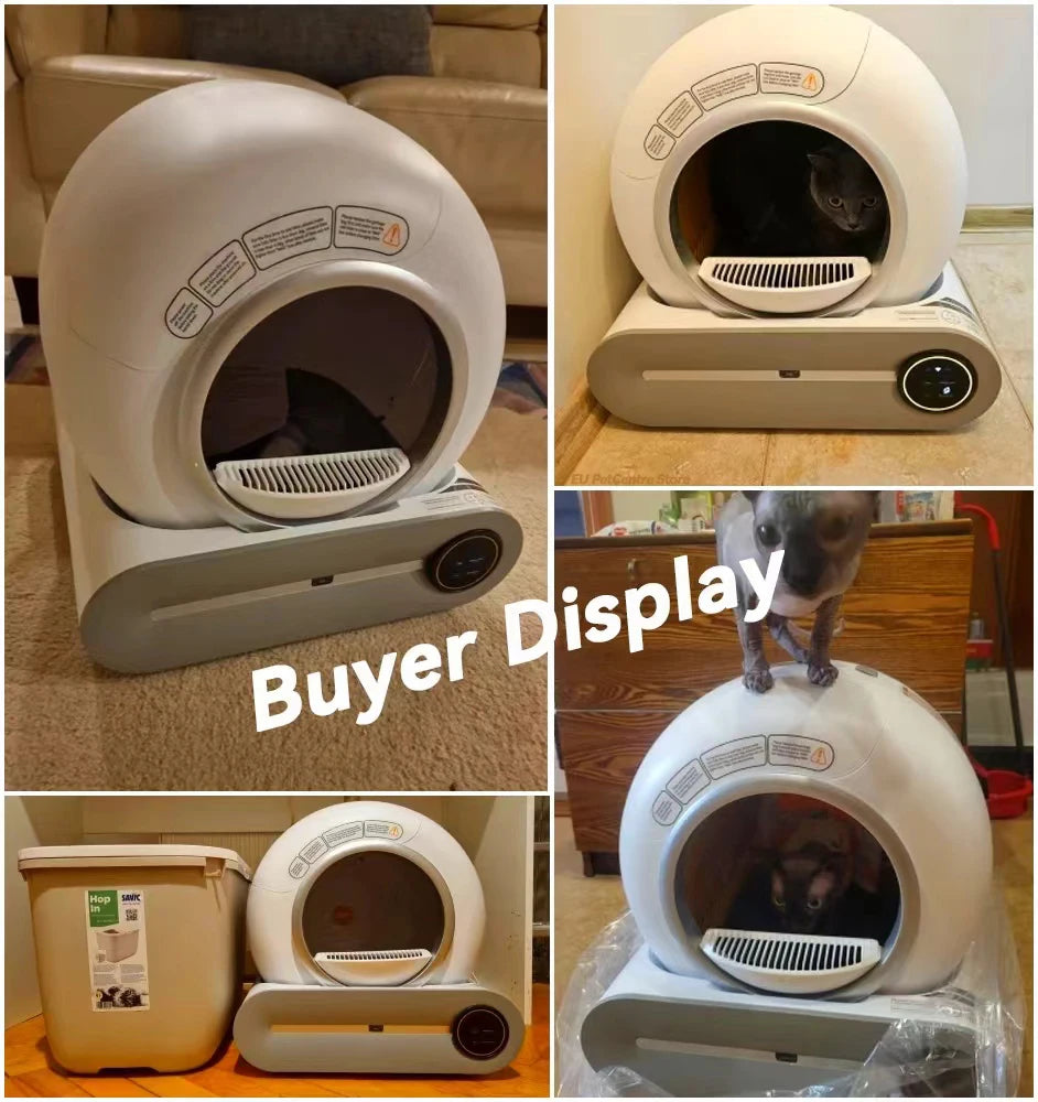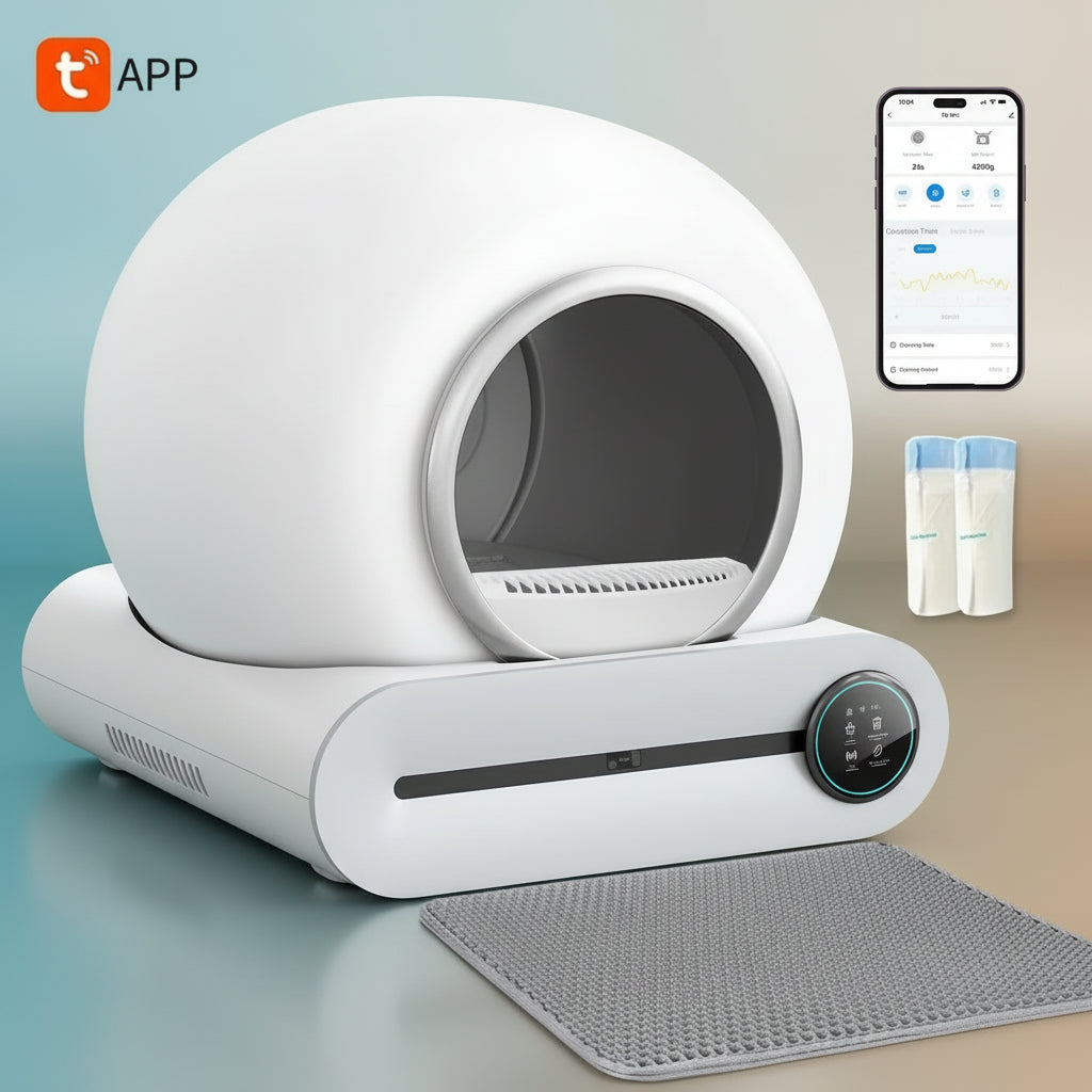 Dit is een gesloten, extra grote kattenbak die het beheer van kattenafval revolutioneert. Het systeem detecteert het gebruik en start automatisch een reinigingscyclus, waarbij afval wordt gedeponeerd in een afgesloten bak. Via de app biedt het gemak van bediening op afstand, geavanceerde monitoring en zelfs gezondheidstracking, terwijl het gesloten ontwerp zorgt voor maximale geurcontrole en hygiëne.