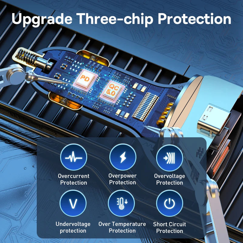 Three types of smart recognition chips are built in to prevent devices from over-current, over-voltage, over-temperature, short circuit and over-power.