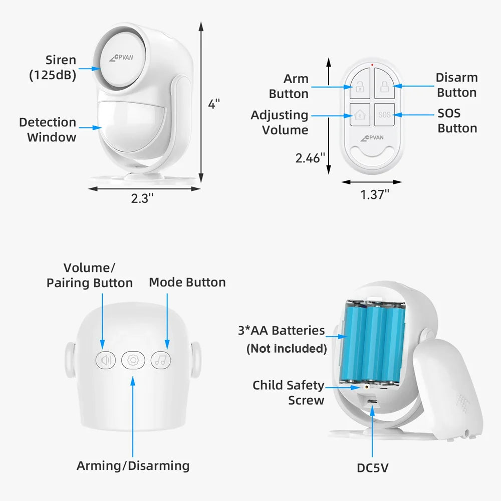 Deze draadloze infrarood (PIR) bewegingsmelder van CPVAN is een essentieel onderdeel voor de beveiliging van uw huis. De detector registreert warmteveranderingen veroorzaakt door bewegende objecten, zoals een indringer, en zendt draadloos een signaal naar het alarmsysteem. Het apparaat is vaak voorzien van een interne sirene en is ontworpen om snel en eenvoudig in elk thuissysteem te integreren.