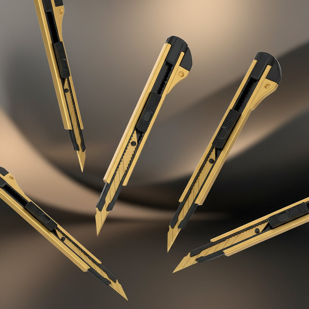 | Blad | Metalen lemmet met scherpe hoek en breukmes (afbreekbaar) |