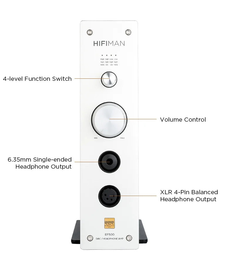 De HIFIMAN EF500 is een veelzijdig alles-in-één audioapparaat dat de functionaliteit van een DAC (Digital-to-Analog Converter), een hoofdtelefoonversterker en een hoofdtelefoonstandaard combineert. Het apparaat is uitgerust met streaming media-mogelijkheden en de hoogwaardige Hymalaya LE R2R DAC-architectuur, wat zorgt voor een exceptionele geluidsweergave en een rijke, gedetailleerde luisterervaring voor audiofielen.