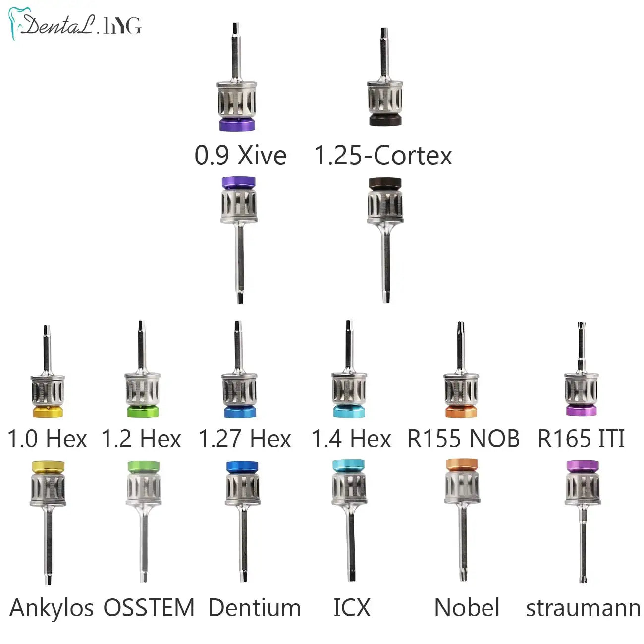 De set bevat een assortiment van schroevendraaierbits met verschillende maten en vormen (bijvoorbeeld Hex, Torx, Unigrip) om compatibel te zijn met diverse populaire implantaatsystemen (zoals Nobel Biocare, Straumann, Astra Tech, enz.).