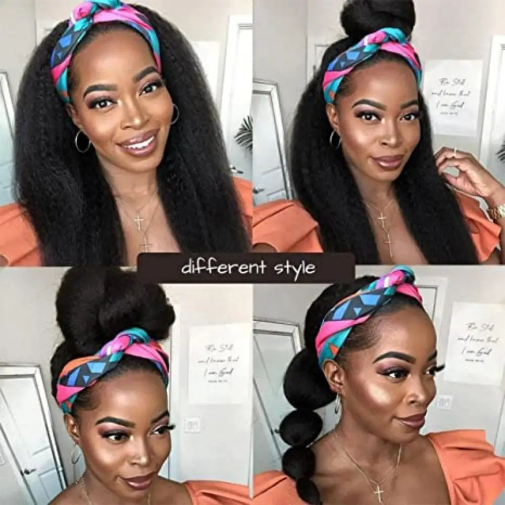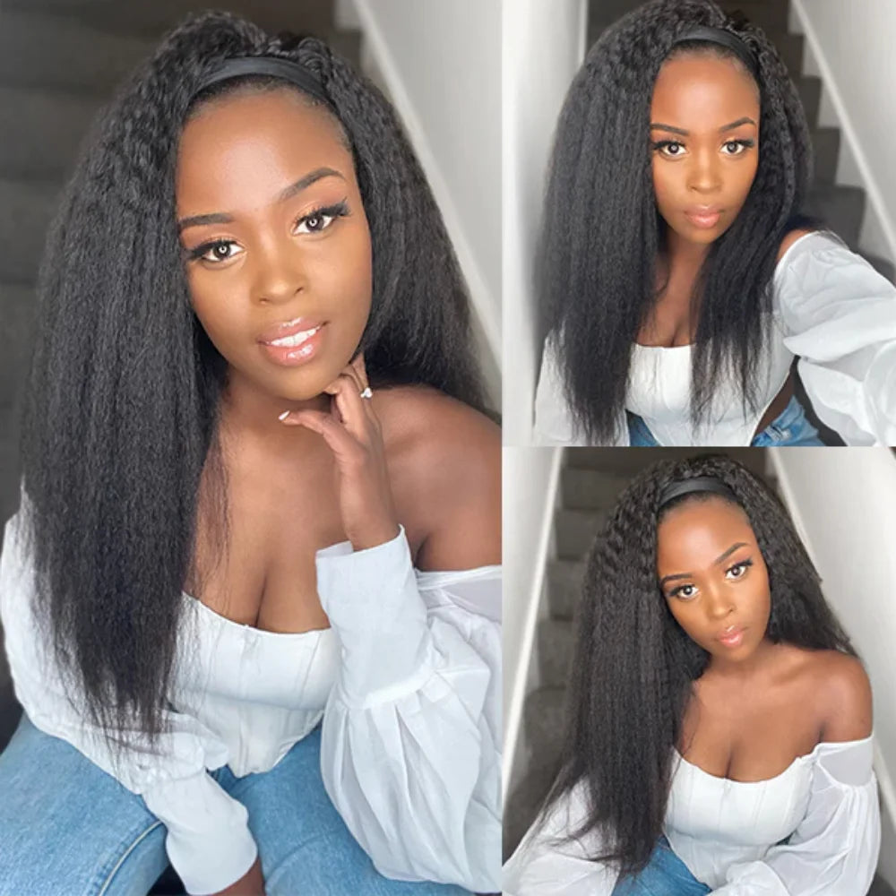 Kinky rechte hoofdbandpruik van echt haar, Yaki hoofdbandpruik, volledig machinaal vervaardigd, natuurlijke kleur Braziliaanse Remy-haarpruik, 180%