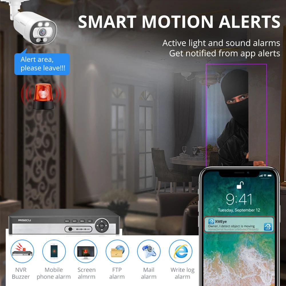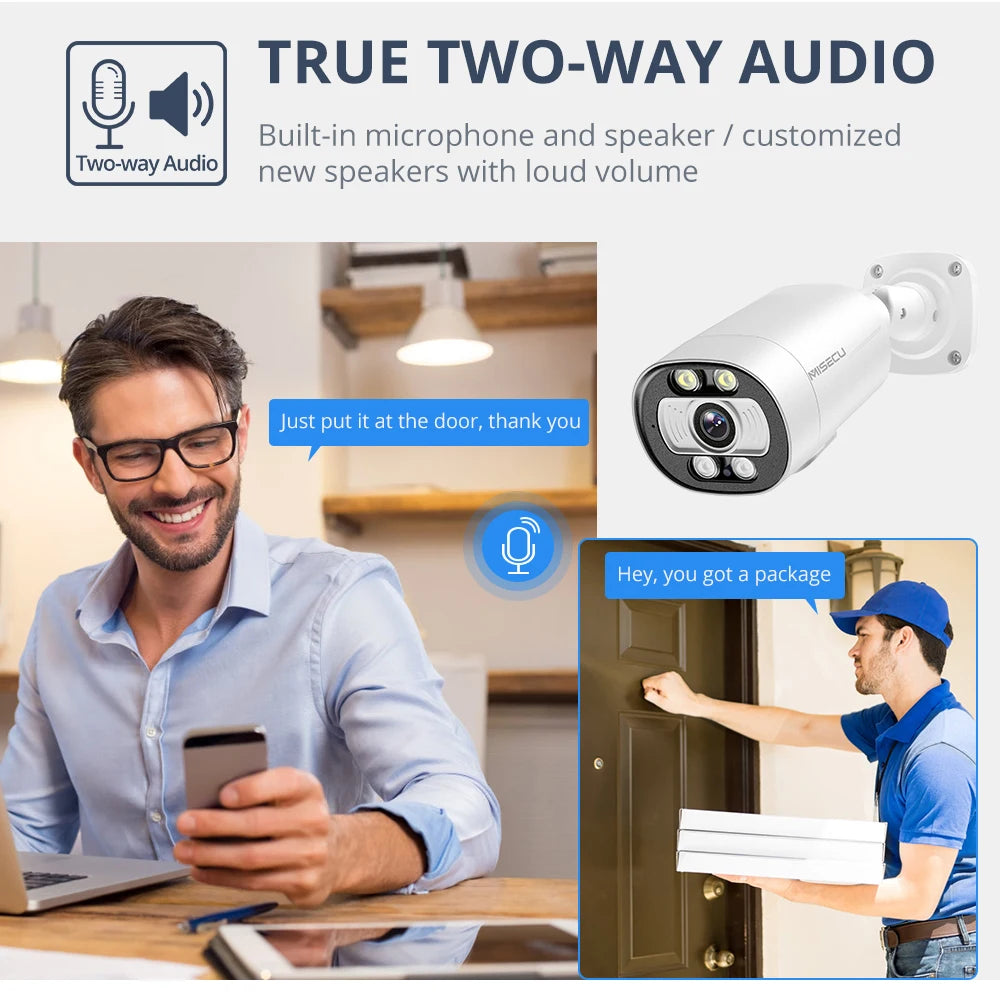 Een professioneel H.265 beveiligingssysteem ontworpen voor buitengebruik. Dit Power over Ethernet (POE) systeem biedt superieure bewaking met de mogelijkheid tot 4K (8MP) resolutie. De geavanceerde Persoonsdetectie vermindert valse alarmen, terwijl het Kleuren Nachtzicht en P2P (peer-to-peer) functionaliteit zorgen voor heldere beelden, dag en nacht, met eenvoudige toegang op afstand voor volledige CCTV Surveillance Bescherming.