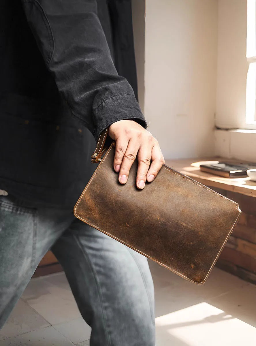 Deze stijlvolle NUPUGOO clutch/enveloptas is gemaakt van echt runderleer (koeienhuid) en combineert een casual design met een grote capaciteit. Het is ideaal voor het veilig en georganiseerd meenemen van uw mobiele telefoon, portemonnee en andere essentiële zaken.