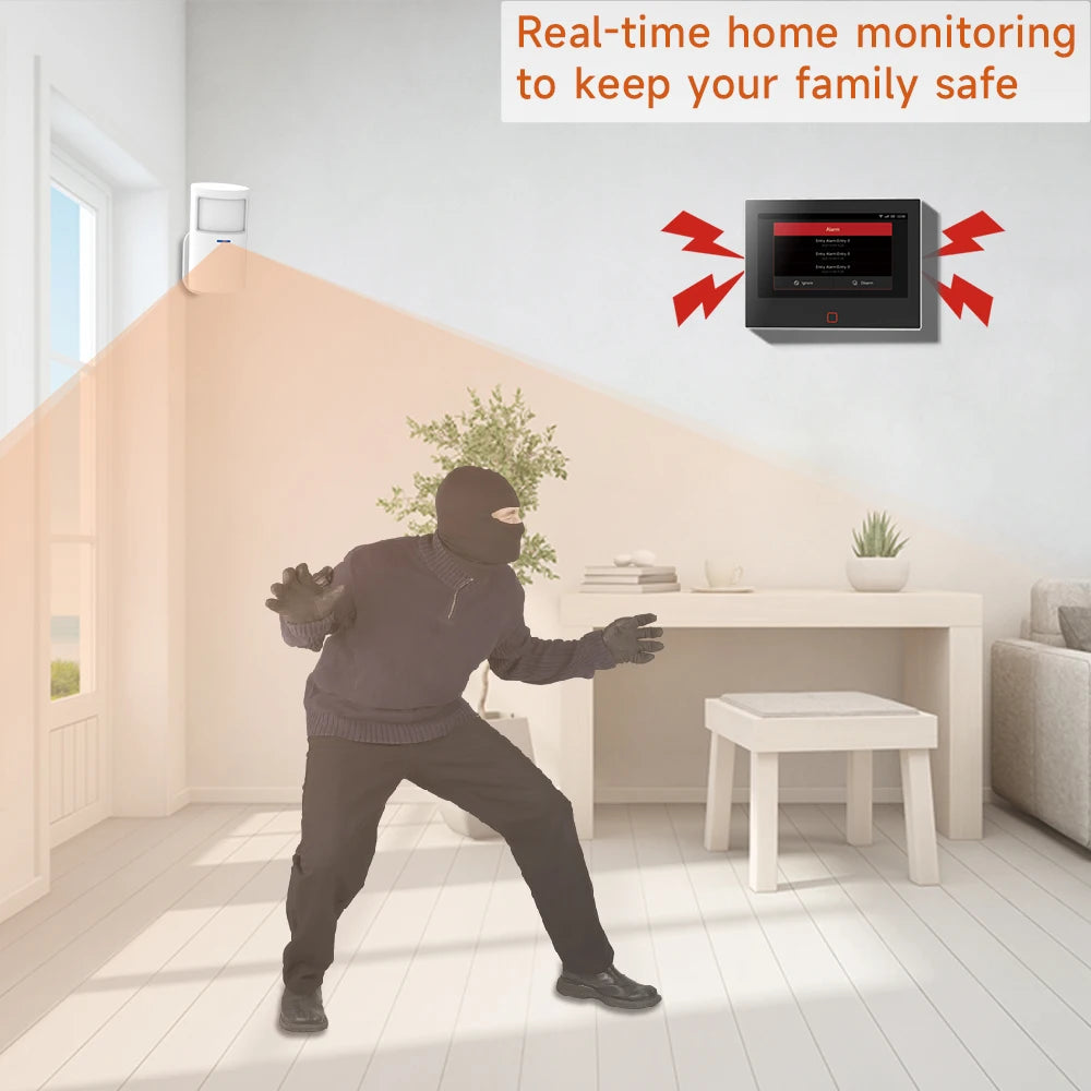 staniot Motion Sensor is with 110° adjustable detection range, covers a wide range. As soon as any break-in is detected, you will be alerted by APP notifications and a loud alarm from the security panel.