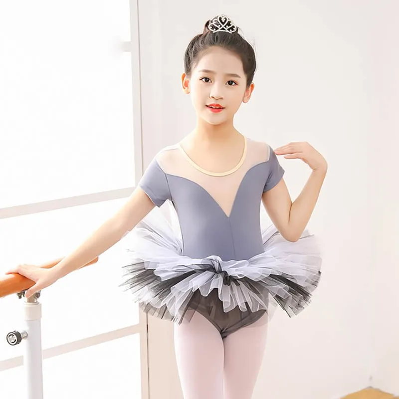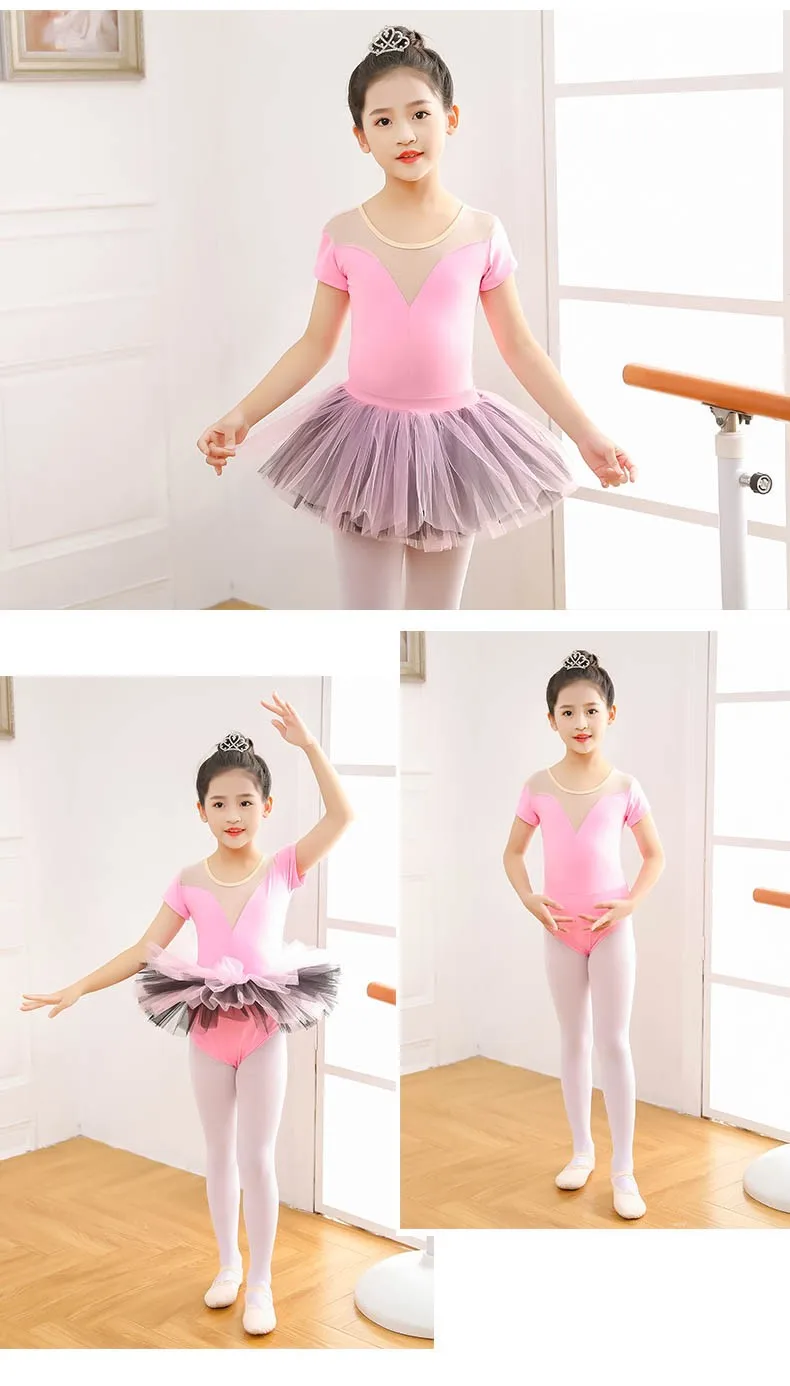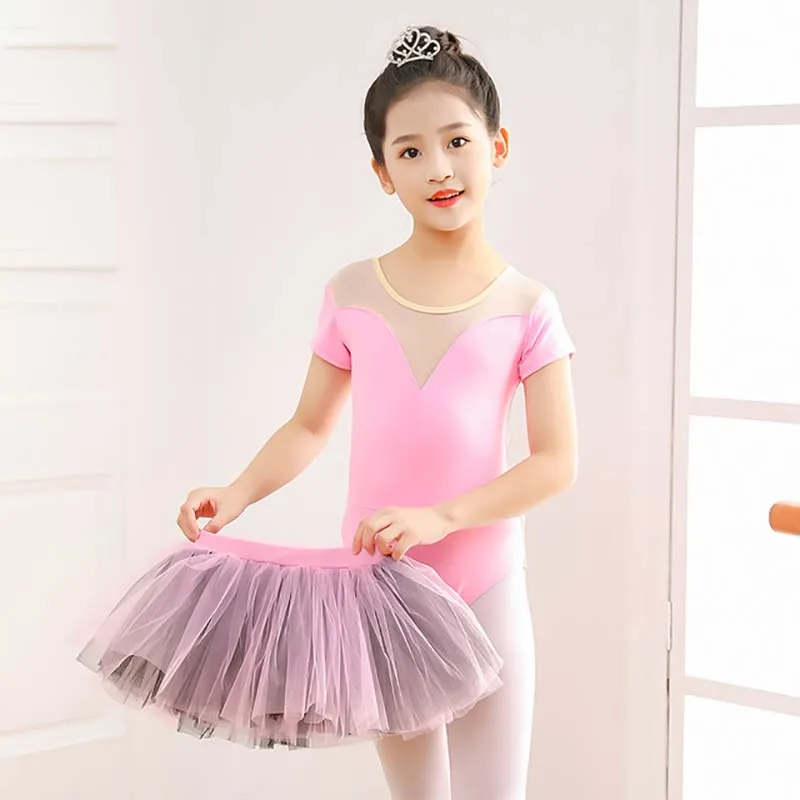 Zomermeisjes Katoenen Balletpakjes Met Korte Mouwen En Tutu-Rok