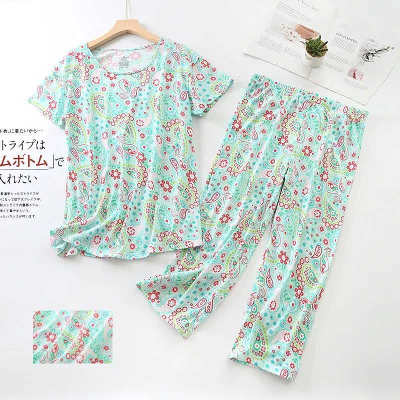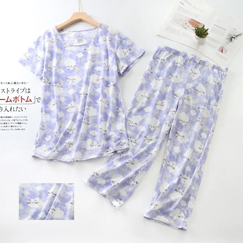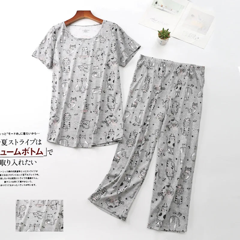 Zomer Dames Casual Losse Pyjamasets Katoenen Nachtkleding Pak