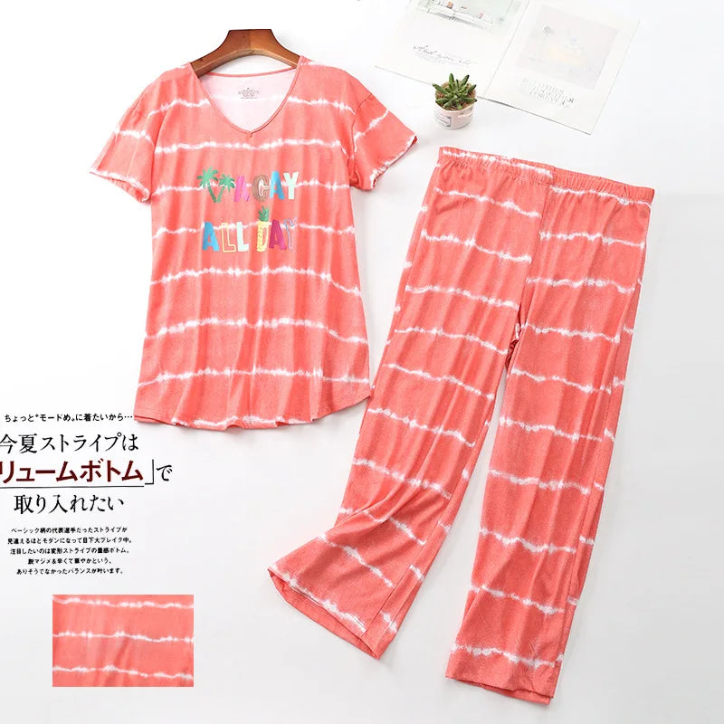 Deze pyjamaset is ontworpen voor optimaal comfort tijdens de zomermaanden. De set bestaat uit losse, casual pyjama's gemaakt van zacht katoen en is perfect als comfortabele nachtkleding of huiskleding (loungekleding). Het product benadrukt de ruime pasvorm en is beschikbaar in grote (Oversize) maten (Pijama Mujer Grande).