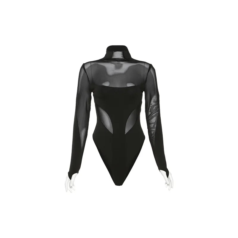| Dit is een zwarte jumpsuit voor dames met lange mouwen, ideaal voor een nachtclub of avondje uit. De stijl wordt gekenmerkt door sexy en gedurfde elementen, met een perspectief of doorschijnend detail ("Licht"), wat volwassen charme en vertrouwen uitstraalt. Ondanks de 'hete' uitstraling, wordt het materiaal ook beschreven als zacht en eenvoudig qua basisvorm. |