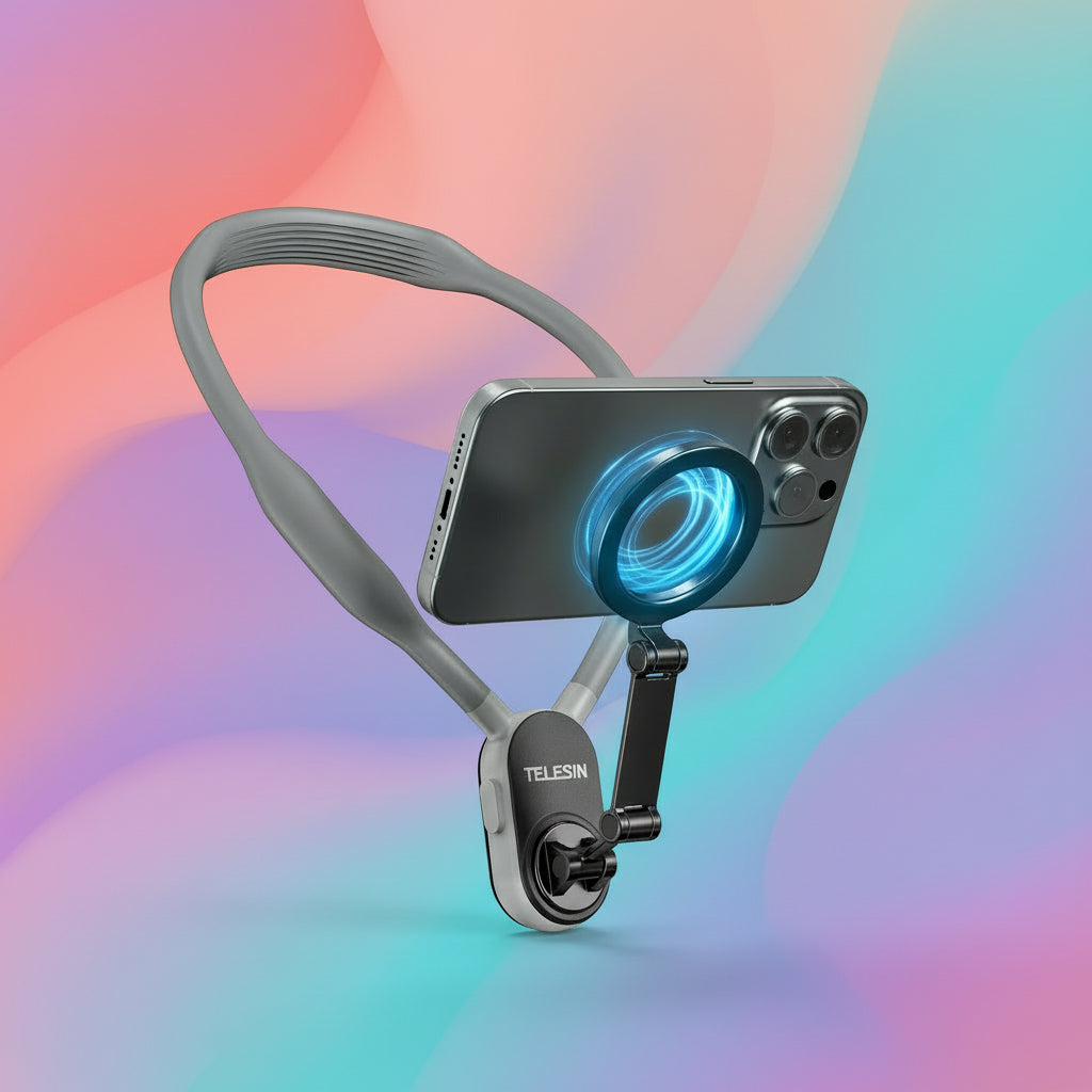 Dit is een innovatieve, handsfree nekhouder van TELESIN, ontworpen om uw smartphone veilig op borsthoogte te monteren voor het vastleggen van stabiele, First-Person View (POV) beelden. De ergonomische band is gemaakt van comfortabel siliconen en is voorzien van een sterk magnetisch Snelontgrendelingssysteem (vaak met N52-magneten). Dit maakt snelle, eenhandige bevestiging mogelijk en is ideaal voor vloggen, koken, sport en het vastleggen van actieve ervaringen.