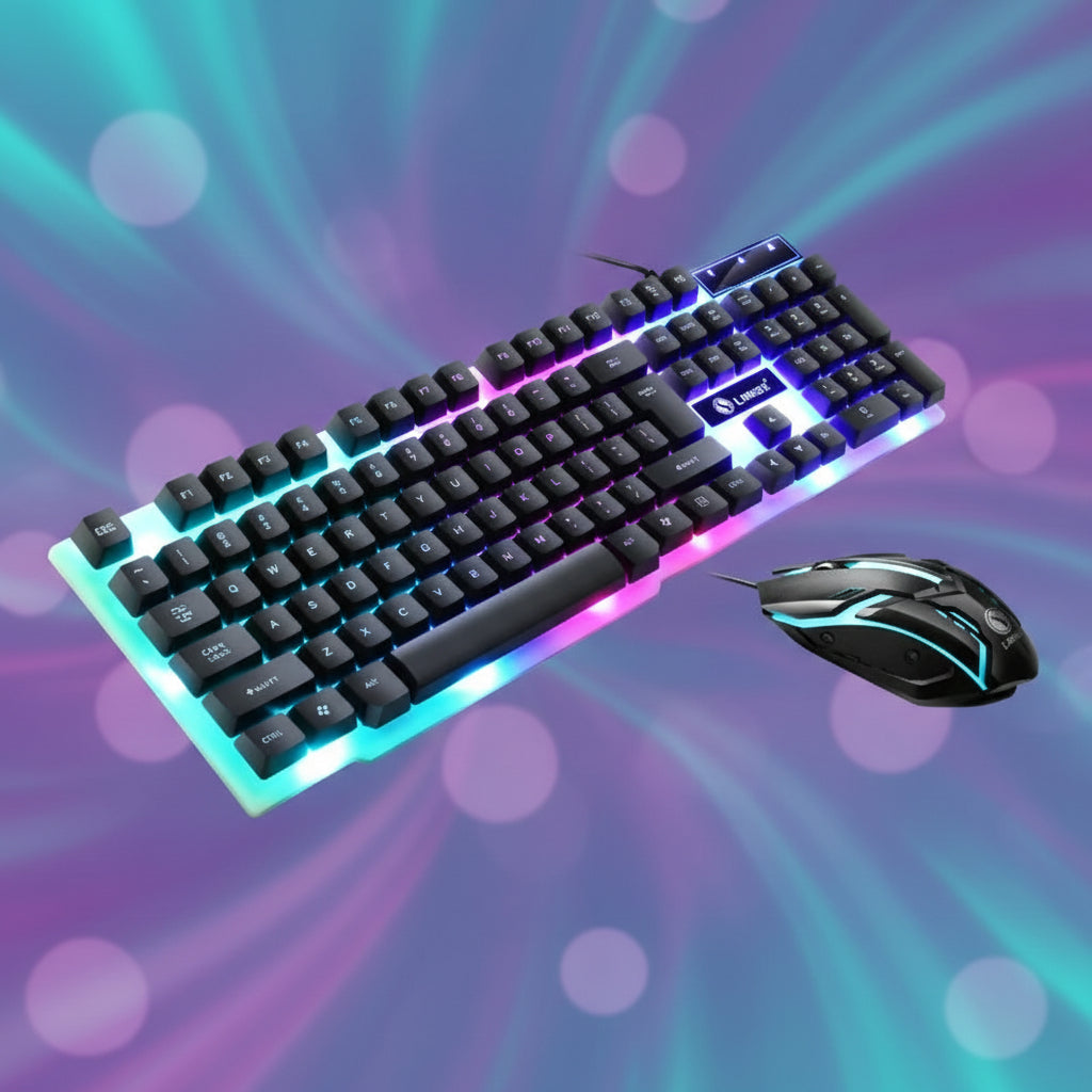 Deze complete gaming combo kit biedt een plug-and-play oplossing voor zowel de serieuze gamer als de thuiswerkende professional. De set is uitgerust met levendige regenboog LED-achtergrondverlichting en combineert een responsieve muis met een duurzaam toetsenbord voor een verbeterde pc-ervaring.